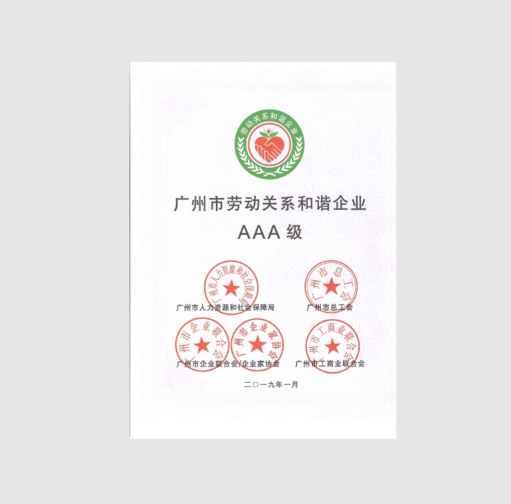 获奖名号:广州市劳动关系和谐企业AAA级