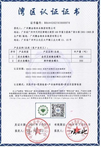 鹰金钱公司是首个获得淡水鱼罐头“湾区认证”的企业